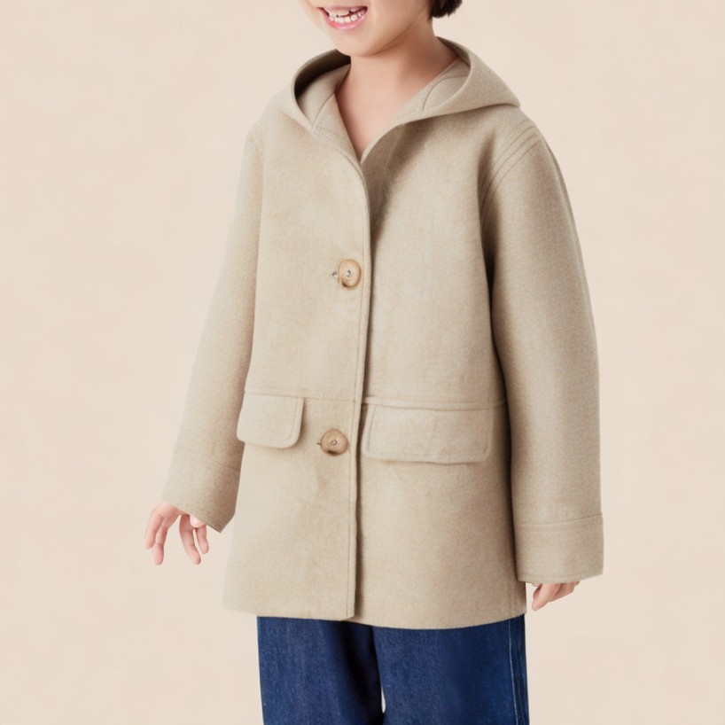 This boys' long coat combines casual style and warmth, making it an ideal choice for the autumn and winter seasons. The hooded design adds to the overall look and provides extra warmth and protection for your child. The button closure makes it easy to put on and take off, while maintaining a neat and tidy appearance. The two front flap pockets are both practical and add a touch of detail, perfect for storing small items or keeping hands warm. The long sleeves and loose fit ensure comfortable movement, allowing your child to play freely.