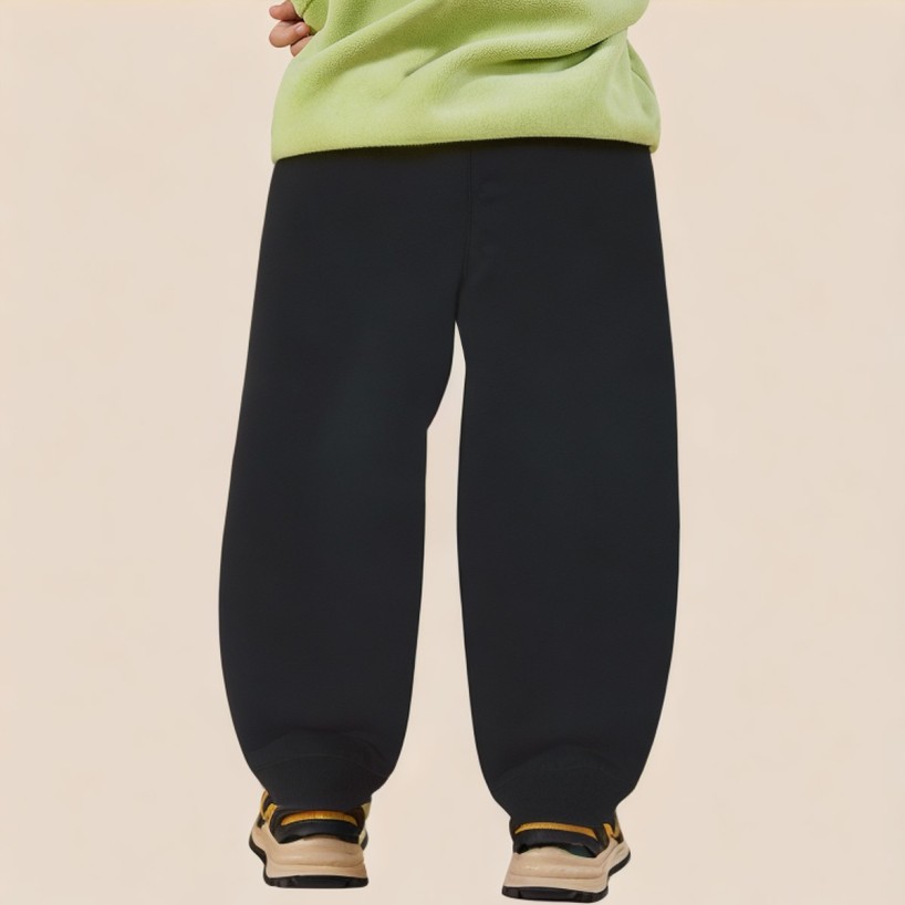 These boys' trousers feature a simple design, combining comfort and practicality, making them suitable for everyday wear and active outdoor activities. The trousers have an elastic waistband with a drawstring for easy on and off and adjustable fit. Side pockets provide convenient storage for small items, and the elastic cuffs ensure freedom of movement while preventing the trouser legs from being too long. The fabric is soft, comfortable, and breathable, suitable for all-day wear.