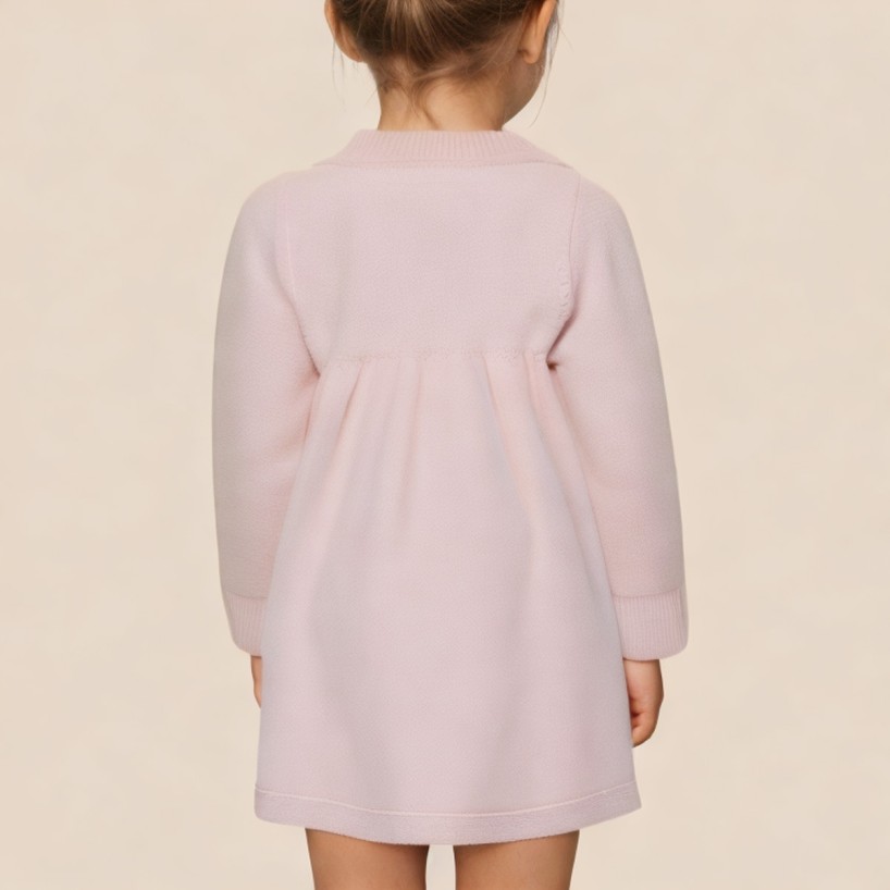 This girls' dress features a stylish printed design, creating a lively and individual look that adds a bright touch to everyday wear. Made from a soft and comfortable blended fabric, it feels delicate against the skin and allows for unrestricted movement, suitable for children's daily activities and various casual occasions. The collared design adds a neat touch to the overall look, and the long sleeves provide both practicality and a layered effect. The elastic cuffs fit snugly around the wrists, preventing slippage and allowing children to move freely; the loose hem drapes naturally, creating a fluid and graceful silhouette when walking, making the overall look lighter and more relaxed.