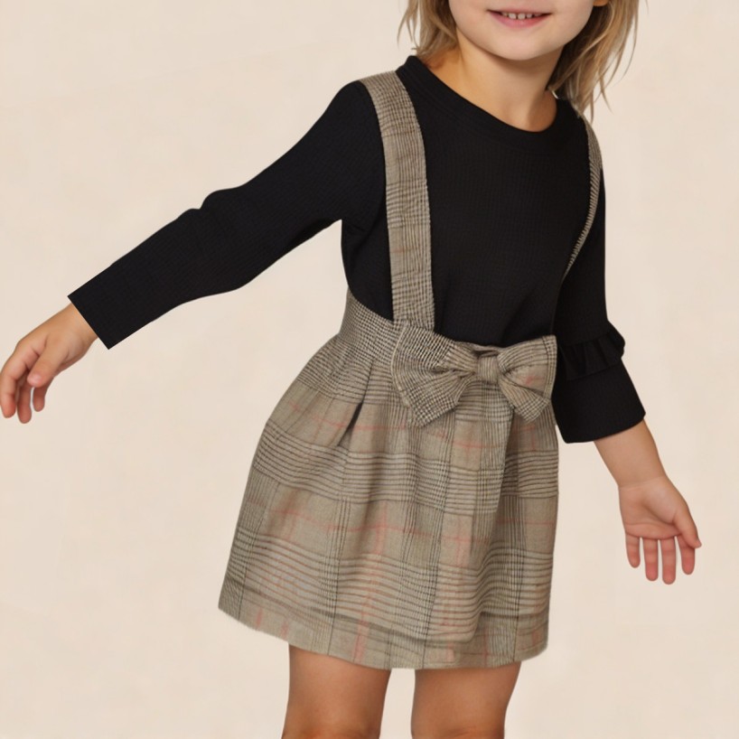 This girls' dress features a classic plaid design, creating a sweet yet playful style perfect for everyday wear and casual occasions. The simple round neckline and long sleeves offer a natural, flowing silhouette, ensuring comfort and ease of movement for children. The elastic cuffs fit snugly around the wrists, preventing slippage and enhancing comfort. The delicate bow detail adds a touch of cuteness, making the dress even more lively and charming. Whether for everyday outings, school wear, or family gatherings, this dress is easy to style and will become a staple in any wardrobe.